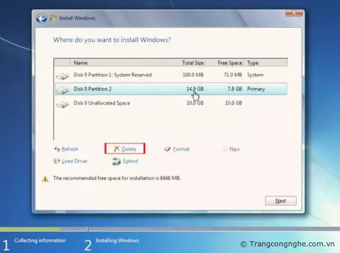 Ở đây trangcongnghe.com.vn đang hướng dẫn bạn format ổ cứng khi cài đặt mới vì thế hãy chọn Custom.