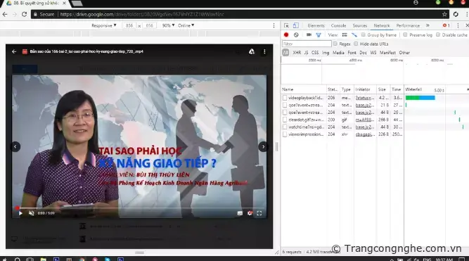 Bước 2: Phát video sau đó nhấn F12 (hoặc chuột phải -> Inspect (Kiểm tra phần tử) -> Network) như hình dưới.