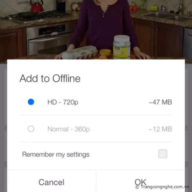 Bước 4: Tại phần Add to Offline bạn hãy chọn chất lượng video và bấm vào OK.