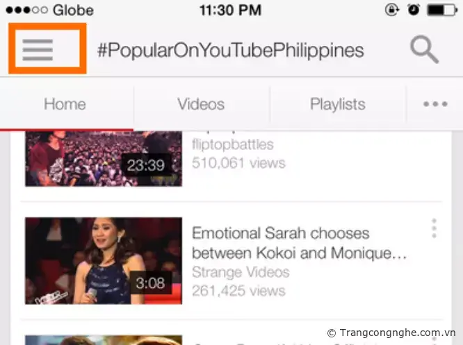 Bước 1: Mở ứng dụng YouTube trên iPhone, sau đó bạn nhấn chọn nút Menu nằm ở phần phía trên, bên trái của màn hình.
