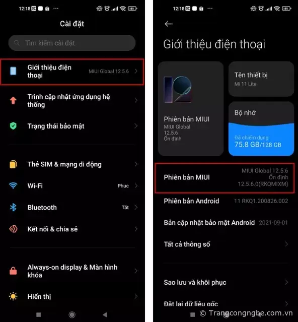 Bước 1: Để cập nhật lên Android 12 phiên bản chính thức cho điện thoại Xiaomi bạn truy cập vào mục Cài đặt > Giới thiệu điện thoại.