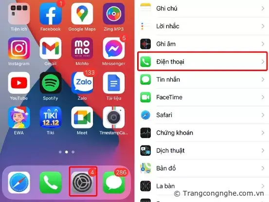Bước 1: Vào Cài đặt > Chọn Điện thoại.