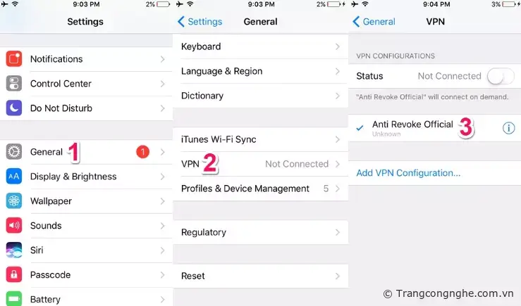 Sau khi cài đặt xong, bạn mở Cài đặt > Cài đặt chung và trong VPN sẽ có mục Anti Revoke đi kèm dấu tích xanh (không cần kích hoạt VPN mà cứ để nguyên như vậy nhé).