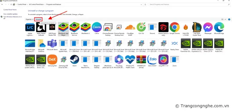 Sử dụng Control Panel để xóa bỏ phần mềm7