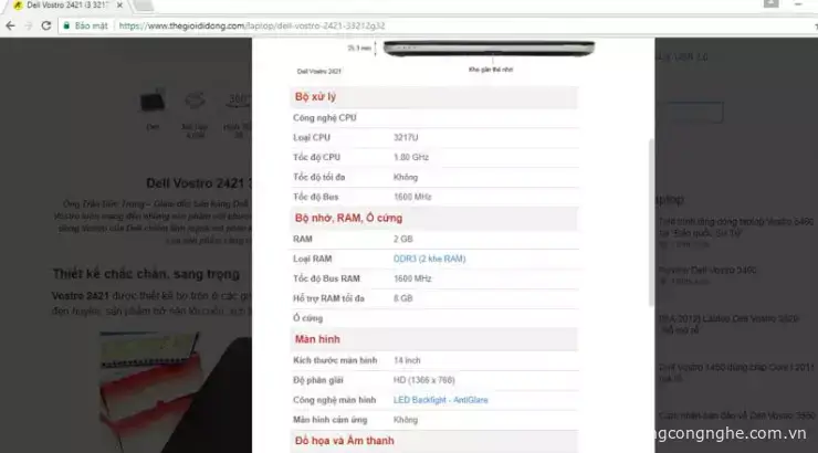 Ở đây mình ví dụ dòng máy Dell Vostrol 2421 xem thông số kỹ thuật, bạn hãy để ý một số phần sau: