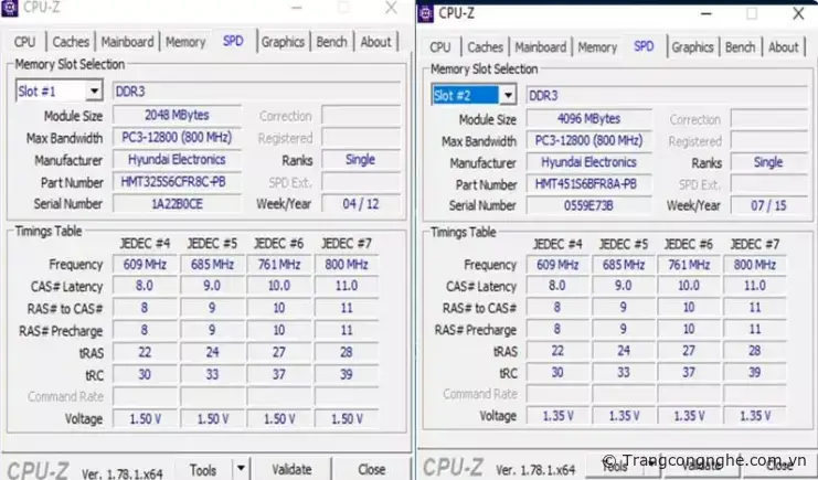 Các thông số tiếp theo là các thông số RAM nằm trong khe đó.