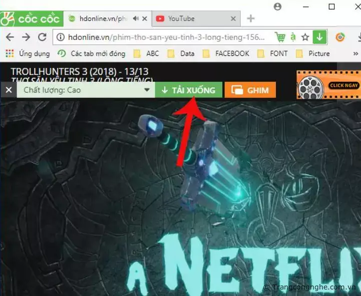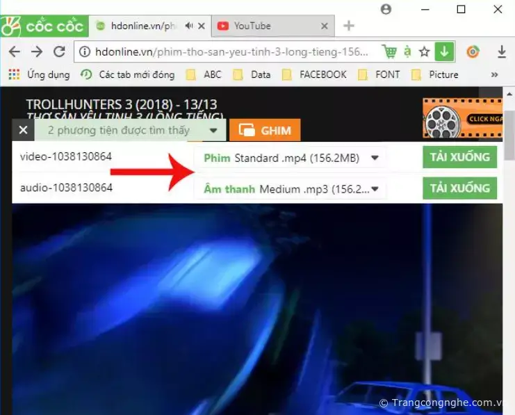 Không chỉ với Youtube, Coc coc còn hỗ trợ người dùng trong việc tải video phim từ các trang hdonline, phimnhanh... Đơn giản bạn chỉ cần truy cập vào các trang này bằng Cốc Cốc, sau đó mở phim bất kỳ lên xem.