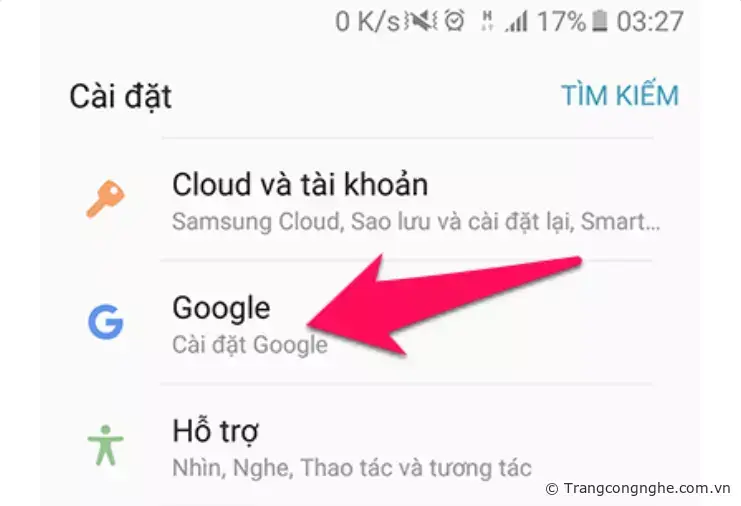 Vào Settings (Cài đặt) của điện thoại. Tìm đến mục Google.