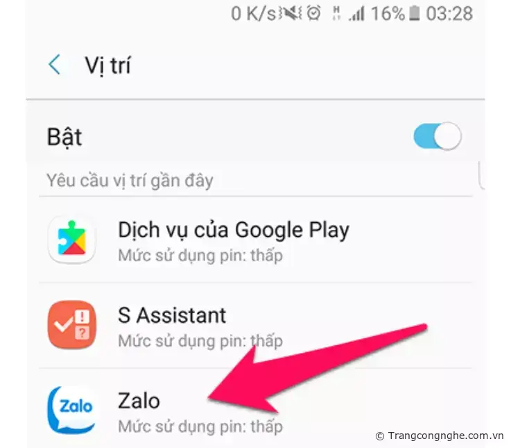 Ví dụ ở đây mình vô hiệu hóa quyền lấy vị trí của Zalo. Nhấn chọn vào Zalo.