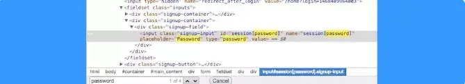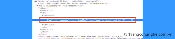 Bước 6: Từ đây, bạn tìm kiếm phần 'password' bằng cách bấm 'Ctrl + F' để chuyển trực tiếp tới dòng code tương ứng với trường mật khẩu.