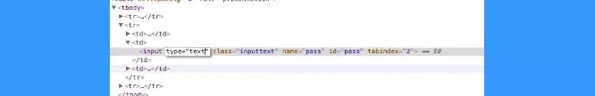 Bước 7: Trong trường 'type = password', nhấp đúp chuột vào nó và sửa thành 'text' sau đó nhấn enter để hiển thị kết quả.