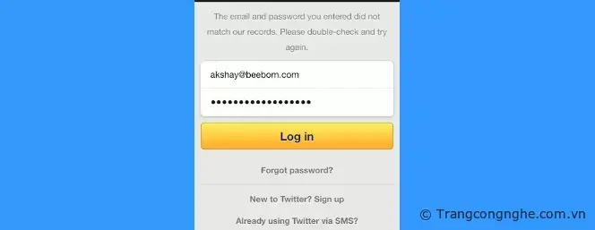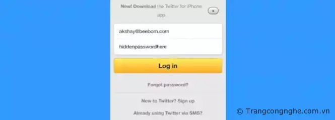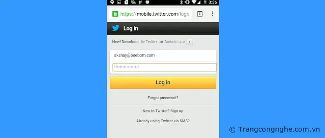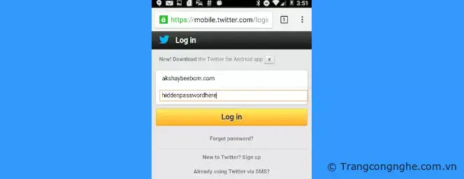 Bước 3: Mở trình duyệt Google Chrome trên điện thoại và tuy cập địa chỉ website bạn muốn xem mật khẩu ẩn. Ở đây mình lấy ví dụ trang Twitter.