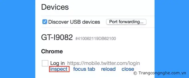 Bước 4: Mở trình duyệt Google Chrome trên máy tính > Từ thanh địa chỉ gõ 'chrome://inspect'. Điều này sẽ giúp hiển thị các truy cập trên điện thoại tới máy tính.