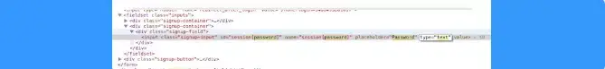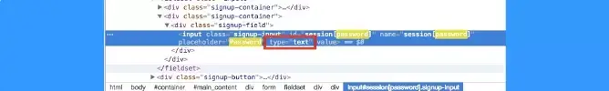 Bước 4: Sau khi đã chọn đúng dòng code > bạn chọn 'input type = password' > nhấp đúp chuột vào nó và sửa từ 'password' thành 'text'.