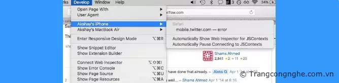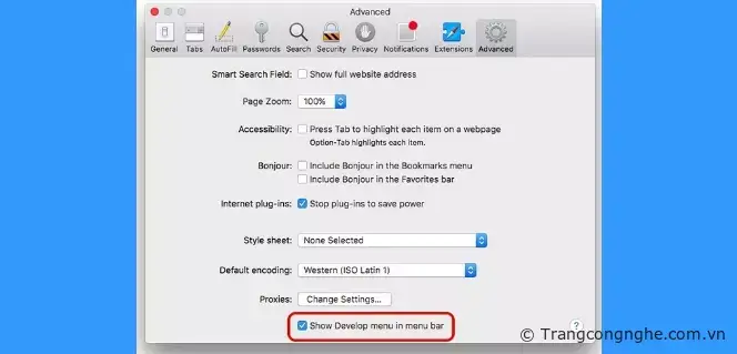 Lưu ý: Trước tiên, bạn cần kích hoạt chế độ Develop bằng cách vào Safari > Preferences > Advanced -> Show Develop trên thanh menu.