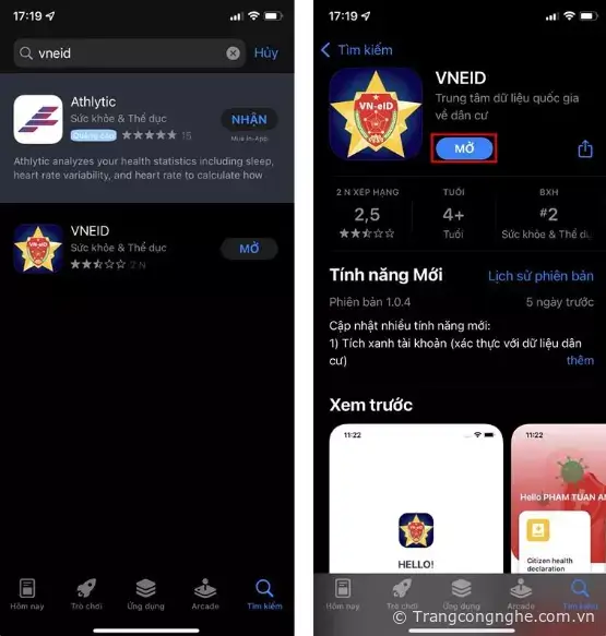 Bước 1. Bạn tải ứng dụng VNEID về điện thoại của mình.