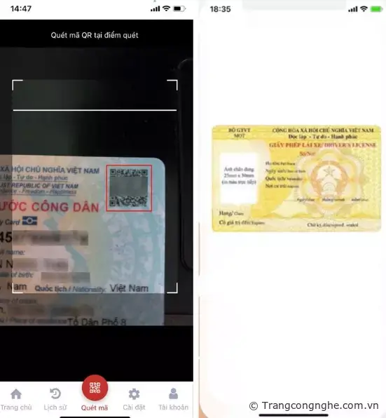 Bước 3. Bạn hướng camera vào mã QR trên thẻ Căn cước công dân để quét. Vuốt lên để mở thông tin Giấy phép lái xe của mình.