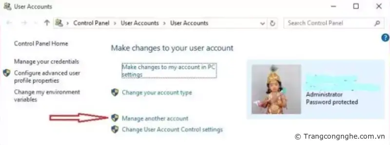 Click chuột vào 'Manage another account', bạn thấy cửa sổ Manage Accounts hiện lên.