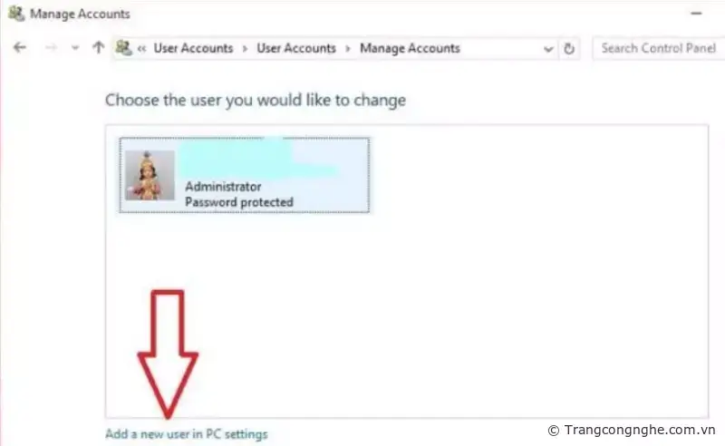 Tại cửa sổ Manage Accounts, người dùng thấy tất cả tài khoản của mình. Nếu bạn chỉ có một tài khoản Admin và muốn tạo thêm tài khoản khách, nhấp vào “Add a new user in PC settings” ở phía dưới. Cửa sổ Settings hiện lên.