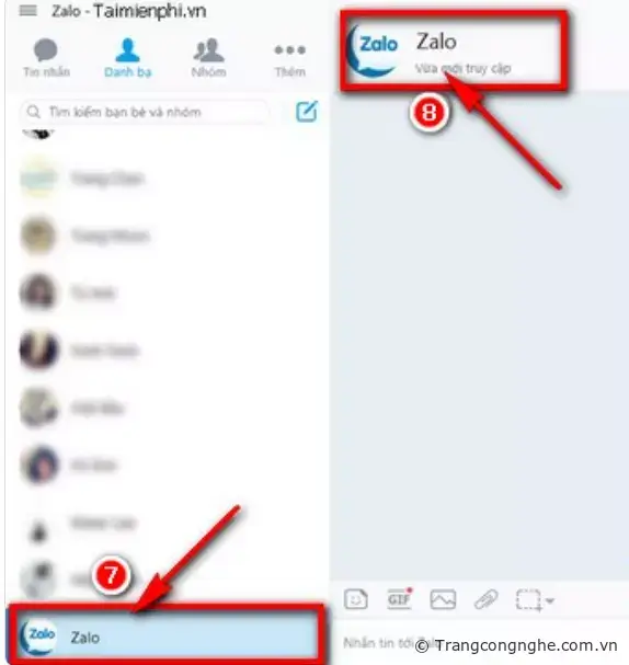 Bước 1: Đăng nhập vào Zalo bằng tài khoản của bạn, tại khung Nhắn tin hoặc Danh bạ, mở cửa sổ trò chuyện với người bạn cần tải ảnh. Chọn biểu tượng 3 dấu gạch ngang góc trên cửa sổ trò chuyện.