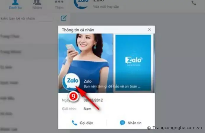 Bước 2: Bạn có thể tải ảnh của bất cứ người bạn nào trên Zalo, mở cửa sổ chat với cá nhân cần lấy ảnh. Tại cửa sổ khung chat, click vào hình đại diện của người đó ở góc trên khung chat.