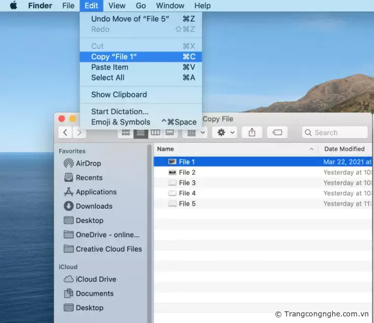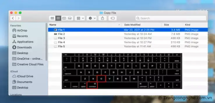 - Bạn có thể sử dụng tổ hợp Phím Command (cmd) + C để copy file. Lưu ý hãy chọn file trước khi copy nhé