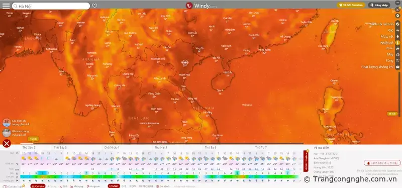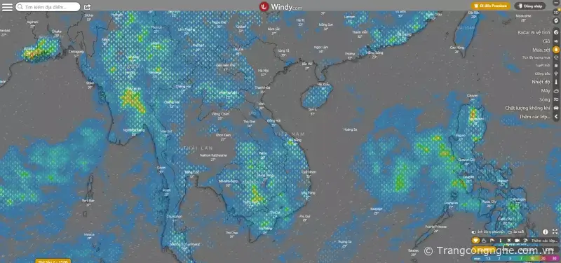 1. Theo dõi thông tin thời tiết trên ứng dụng web Windy