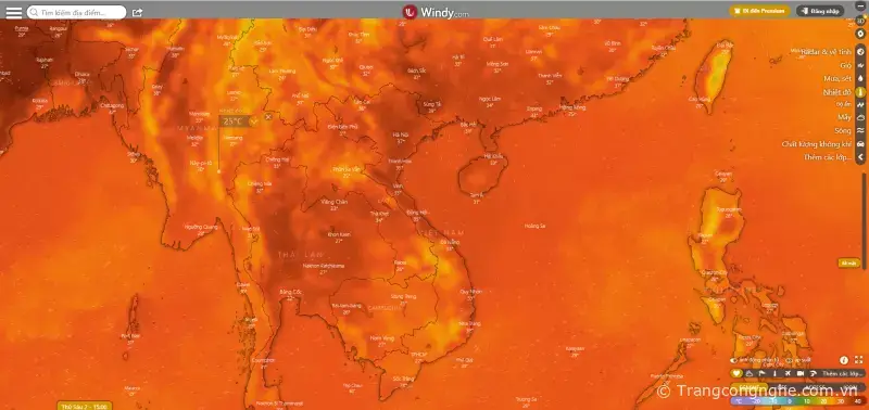Và đừng bỏ qua mục Nhiệt độ, mỗi khi trời quá nóng hoặc lạnh là bạn sẽ cần đến nó đấy, cũng dựa vào thanh trạng thái qua màu sắc ở dưới mà bạn có thể biết được nhiệt độ ở mọi nơi, màu càng tối thì nhiệt độ càng cao và ngược lại.