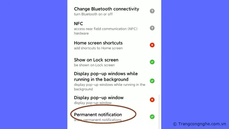 Bước 3: Trên màn hình “quyền truy cập”, bạn sẽ thấy danh sách các quyền mà ứng dụng Messenger yêu cầu. Hãy đảm bảo rằng "Thông báo" hoặc "Quyền thông báo" được bật. Nếu quyền này không được bật, hãy chọn nó và chuyển công tắc sang vị trí "Bật". Điều này cho phép Messenger gửi thông báo đến điện thoại của bạn.