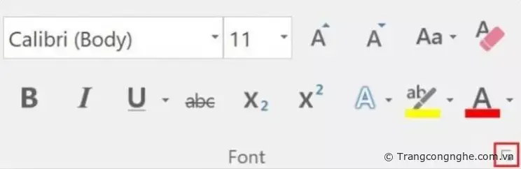 - Mở tài liệu mới và tìm bảng Font ở tab Home. Click phím mũi tên ở góc bên phải phía dưới.