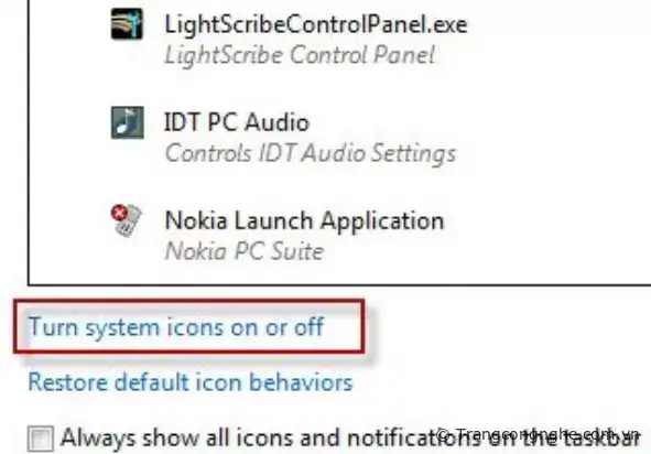 Trên cửa sổ hiện ra, chọn Turn system icons on or off.