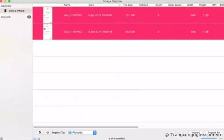 Bước 1: Kết nối iPhone với MacBook bằng dây cáp USB, sau đó mở Image Capture trên MacBook lên, hãy chọn các tùy chọn tin cậy nếu máy yêu cầu quyền truy cập. Đợi một lúc, ảnh sẽ xuất hiện trong Image Capture.