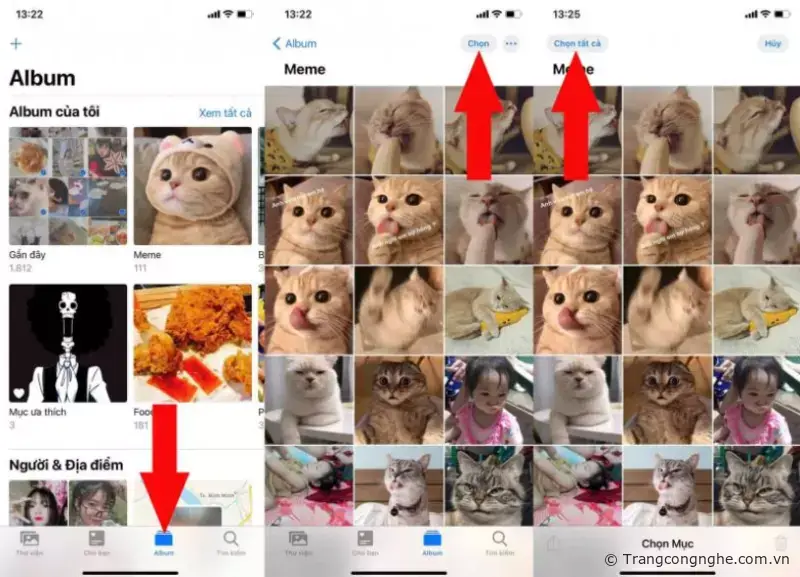 Bước 1: Nếu bạn muốn xóa hết tất cả các ảnh trong 1 Album, bạn chỉ cần vào Ảnh => Album => Chọn => Chọn tất cả.