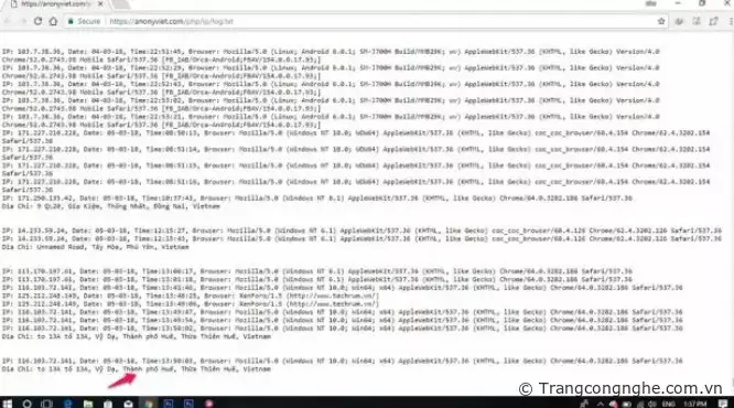 Để xem kết quả, bạn hãy truy cập vào địa chỉ https://anonyviet.com/php/ip/log.txt để xem vị trí của bạn bè. Trang kết quả sẽ cho bạn biết một số thông tin như: