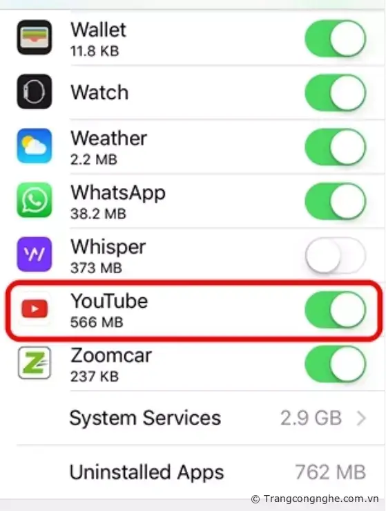 Nếu bạn đang sử dụng dữ liệu di động, có thể sẽ phát sinh lỗi màn hình đen vì YouTube chưa được phép sử dụng dữ liệu di động trên máy bạn. Cách khắc phục là mở kích hoạt cho YouTube bằng cách vào Settings > Mobile/Cellular và cuốn xuống tìm mục YouTube. Hãy gạt thanh trạng thái ở YouTube sang trạng thái ON