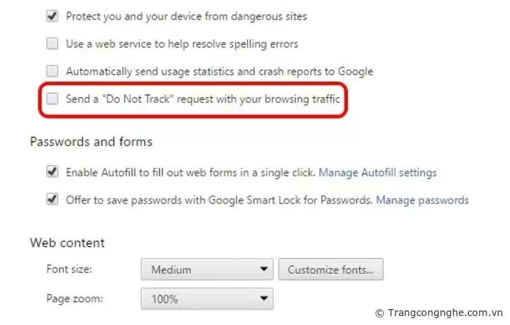 3. Kích hoạt chế độ gửi yêu cầu không theo dõi