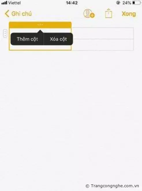 - Nếu dấu ba chấm nằm ngang sẽ có 2 lựa chọn: Thêm cột, Xóa côt.