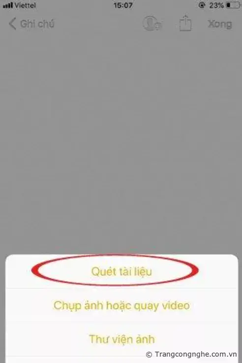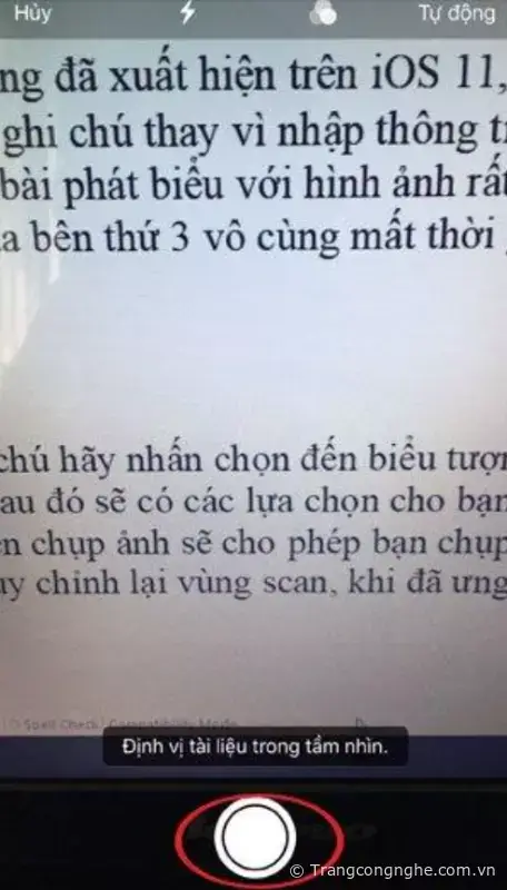 Tại giao diện nhập ghi chú hãy nhấn chọn đến biểu tượng hình tròn có dấu cộng bên trong. Ngay sau đó sẽ có các lựa chọn cho bạn, hãy chọn đến Quét tài liệu, sau đó giao diện chụp ảnh sẽ cho phép bạn chụp lại hình ảnh hãy cố gắng Định vị tài liệu trong tầm nhìn.