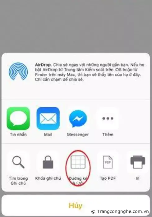 Bạn có thể truy cập vào mẫu giấy mới khi ở giao diện soạn thảo ghi chú, tại đây hãy nhấn đến biểu tượng chia sẻ, sau đó chọn đến Đường kẻ và lưới.
