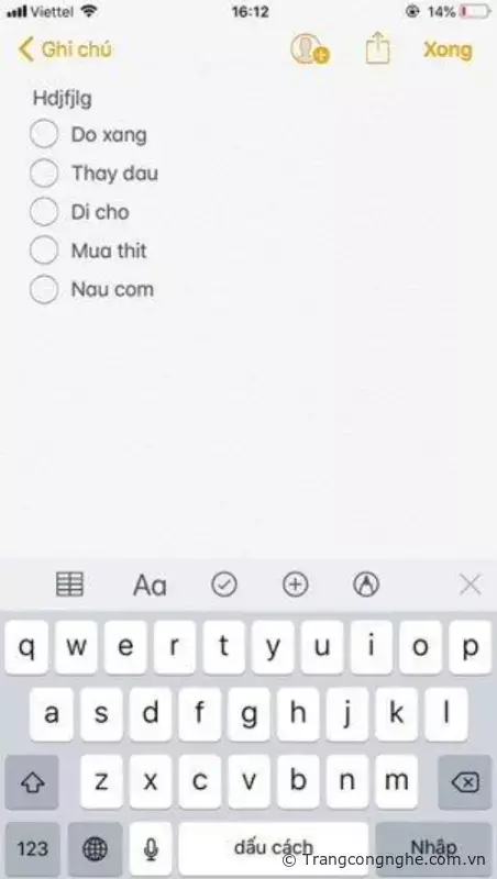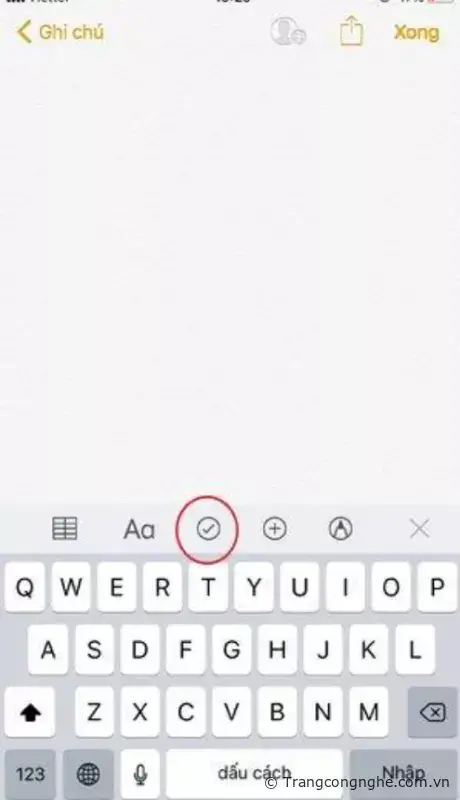 Tại giao diện chính của giao diện ghi chú hãy nhấn chọn đến biểu tượng hình tròn nhỏ có dấu tích bên trong, ngay sau đó biểu tượng tròn đó sẽ xuất hiện ở mỗi dòng, nó sẽ xuất hiện 1 hình tròn mới khi bạn nhấn chọn Nhập. Cứ như vậy chúng ta sẽ tạo ra nhiều checklist cho ghi chú đó.