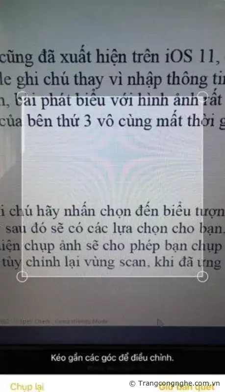 Sau khi chụp chúng ta có thể tùy chỉnh lại vùng scan - Kéo gần các góc để điều chinh, khi đã ưng ý hãy nhấn chọn Giữ bản quét, tiếp tục chọn chụp các bản tài liệu tiếp theo hoặc nhấn Lưu để quay về trang ghi chú ban đầu.