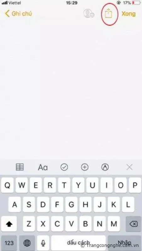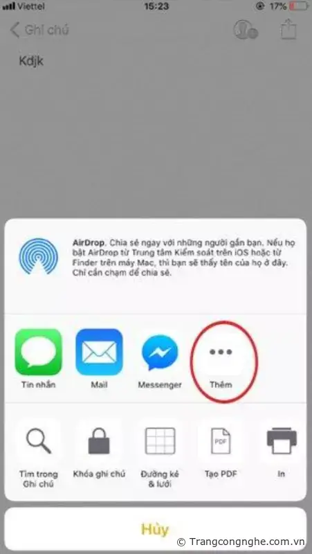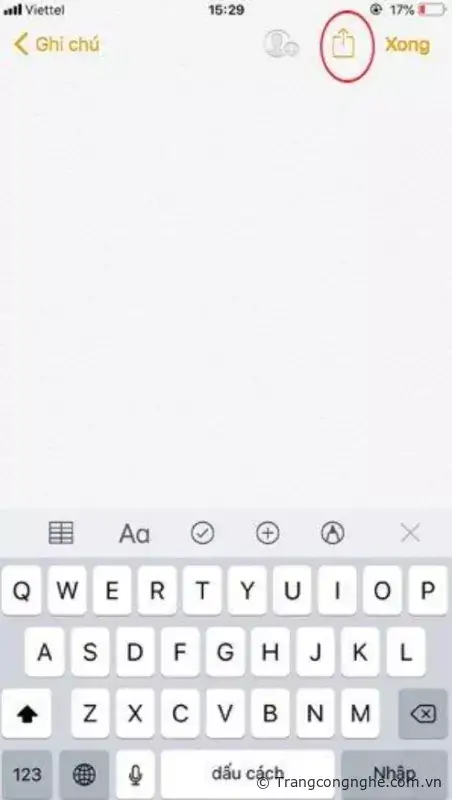 Tại giao diện soạn thảo ghi chú hãy nhấn chọn đến nút chia sẻ - ở góc trên cùng, ngay sau đó các lựa chọn để bạn chia sẻ như tin nhắn, email, Facebook Messenger, Viber, Zalo, vv. Hoặc nhấn vào dấu 3 chấm để lựa chọn thêm các ứng dụng để chia sẻ file ghi chú.