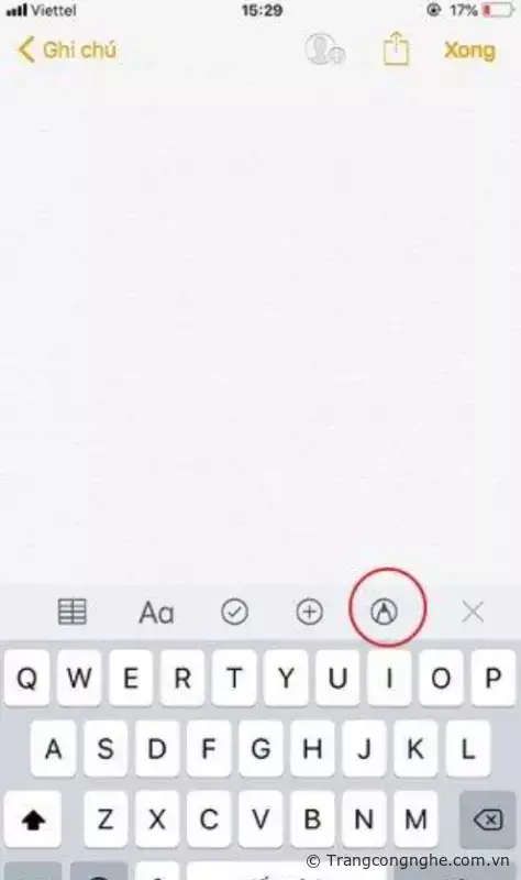 Tại giao diện soạn thảo ghi chú hãy nhấn chọn biểu tượng chiếc bút, ngay sau đó giao diện vẽ xuất hiện bạn sẽ được chọn màu sắc của nét vẽ cùng các đầu bút vẽ khác nhau để tạo ghi chú như thông thường.