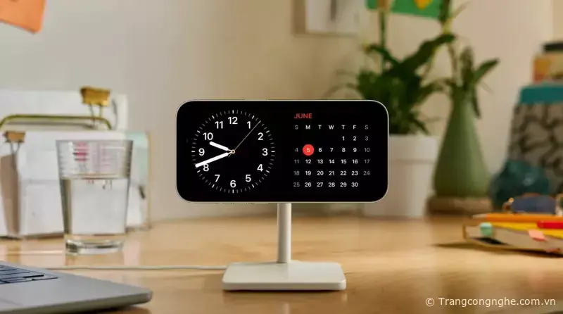 Tại WWDC23, Apple đã chính thức giới thiệu iOS 17, dự kiến sẽ được trang bị sớm nhất trên iPhone 15. Một trong những tính năng mới nổi bật của iOS 17 là chế độ hiển thị ngang thông minh StandBy dành cho iPhone khi được đặt trên đế sạc.