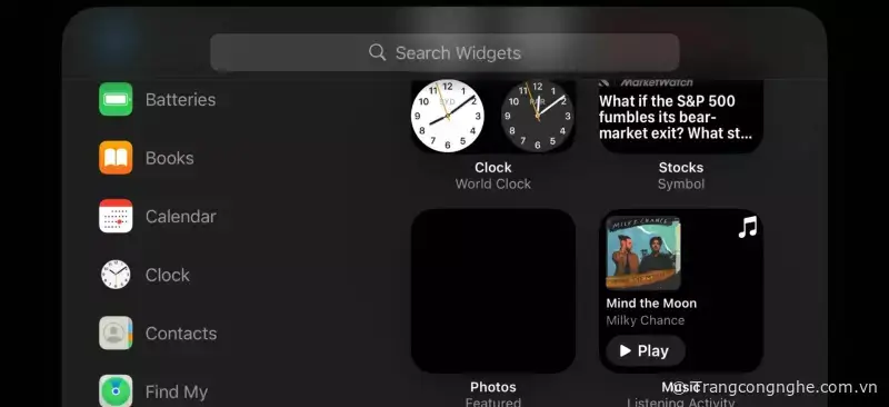 Bạn có thể lựa chọn nhiều Widgets khác nhau để đưa ra màn hình StandBy