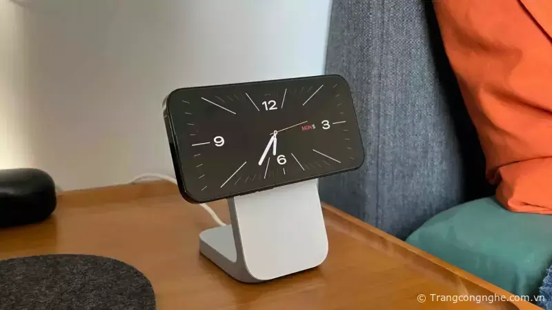 - Bước 2: Khi màn hình iPhone khóa, hãy đặt nó nằm ngang trên bộ sạc được dựng thẳng đứng (chế độ này sẽ không hoạt động trên bộ sạc phẳng hoặc khi màn hình của điện thoại đang mở khóa)