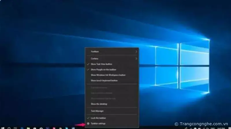 Bước 1: Click phải thanh Task-Bar, chọn TaskBar Settings.