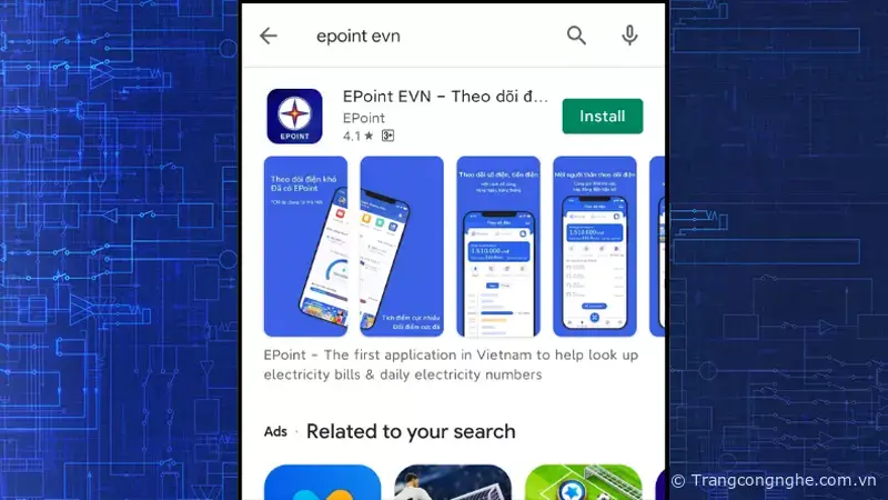 Bước 1: Truy cập vào ứng dụng Appstore hoặc CH play, nhập tìm kiếm "Epoint EVN" và nhấn tải về máy.