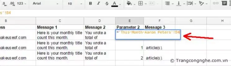 Thông tin cố định chỉ là văn bản đã nhập vào ô và không thay đổi theo từng tháng. Nó chỉ là một phần của email mà luôn được giữ nguyên. Tuy nhiên, đối với dữ liệu bạn muốn thay đổi mỗi tháng, bạn có thể chèn các chức năng nhập dữ liệu có liên quan từ bất kỳ trang tính nào khác trong bảng tính của bạn.