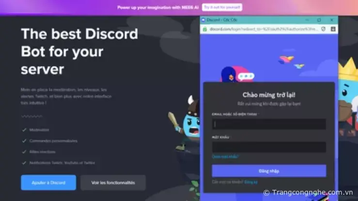 Bước 1: Truy cập trang web MEE6 ( https://mee6.xyz/fr ) để đăng nhập (Login) vào máy chủ Discord của bạn.